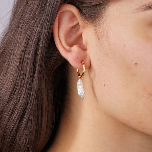 Lumpy Long Pearl Edelstahl Ohrringe