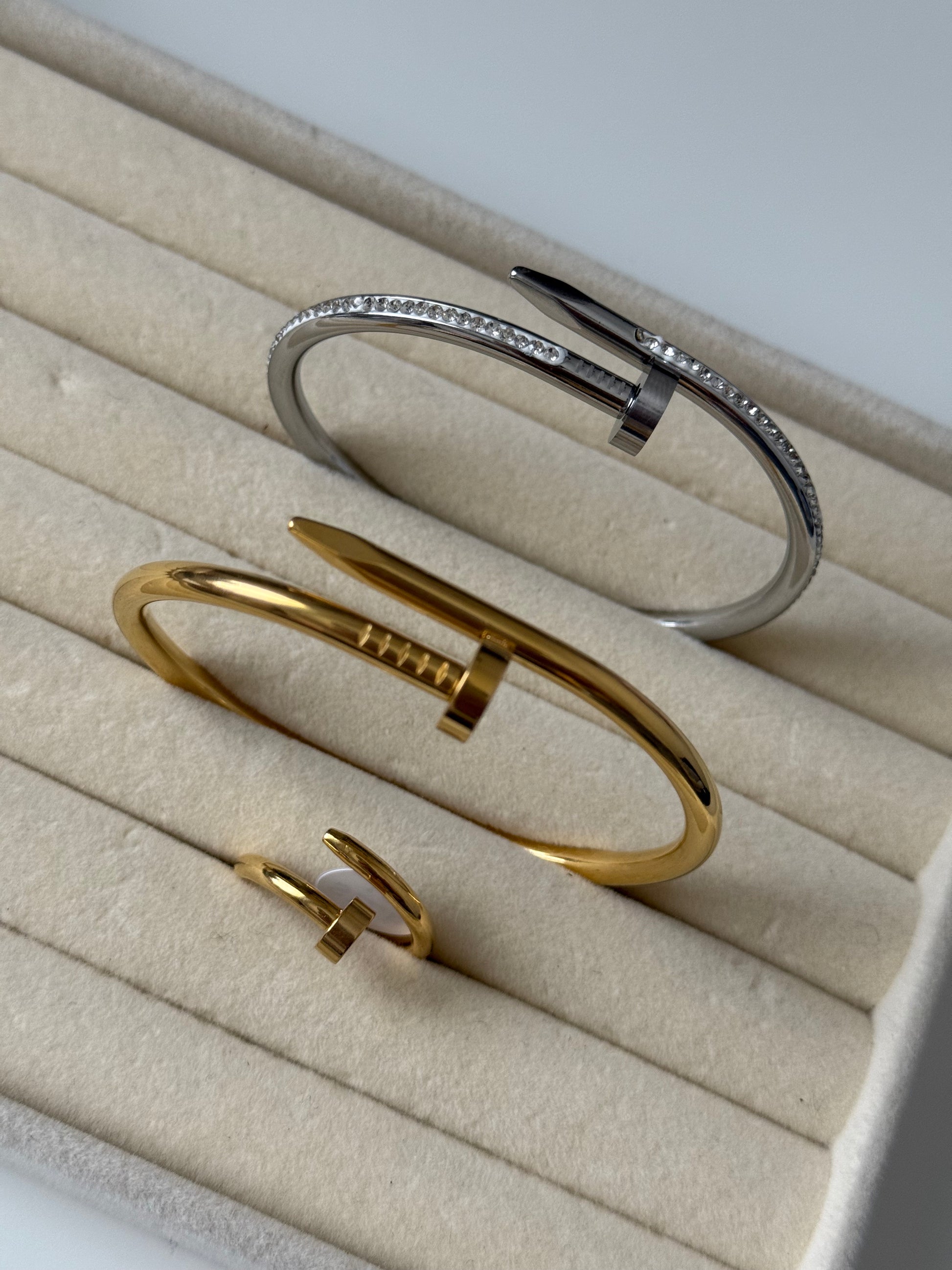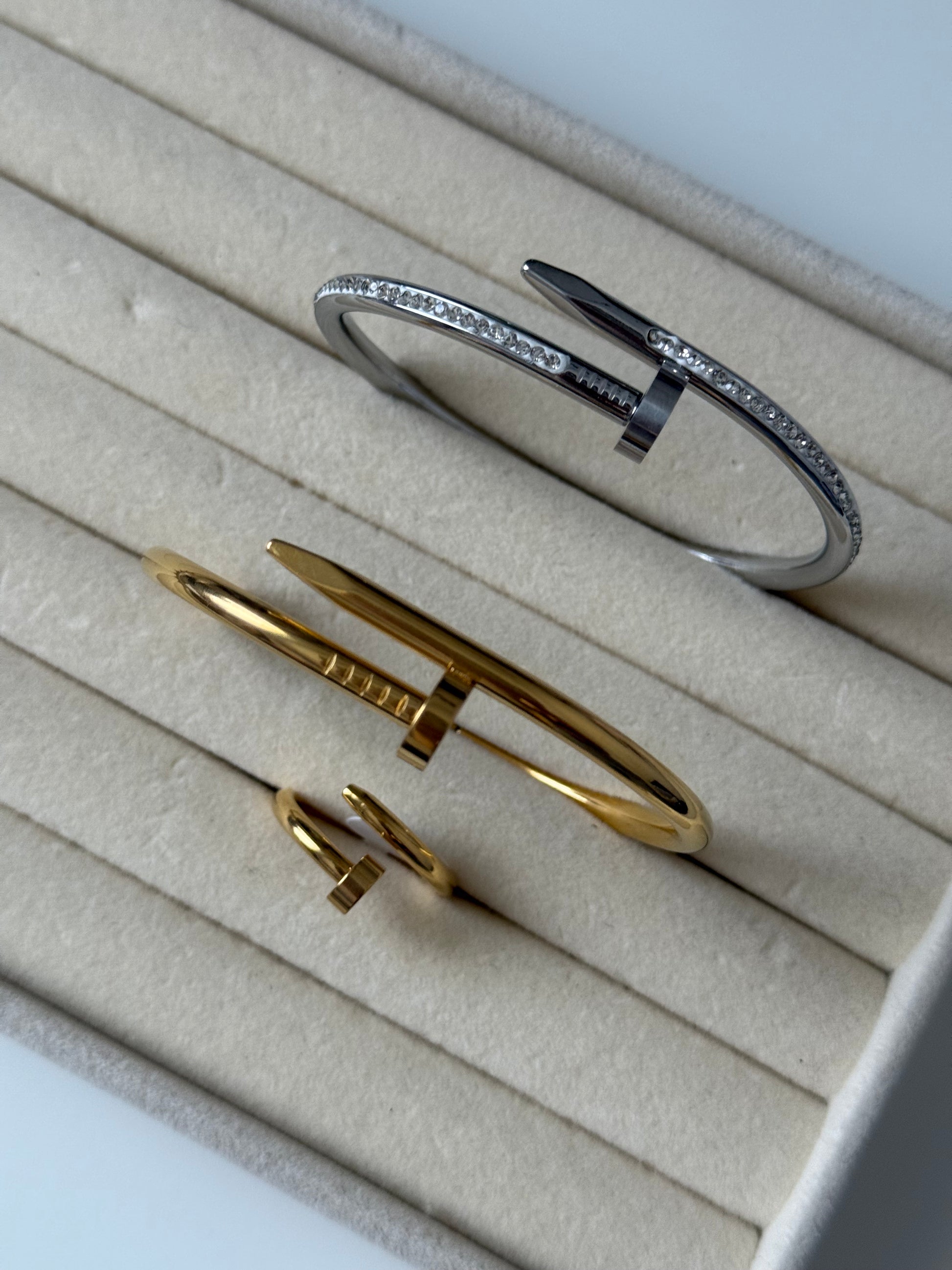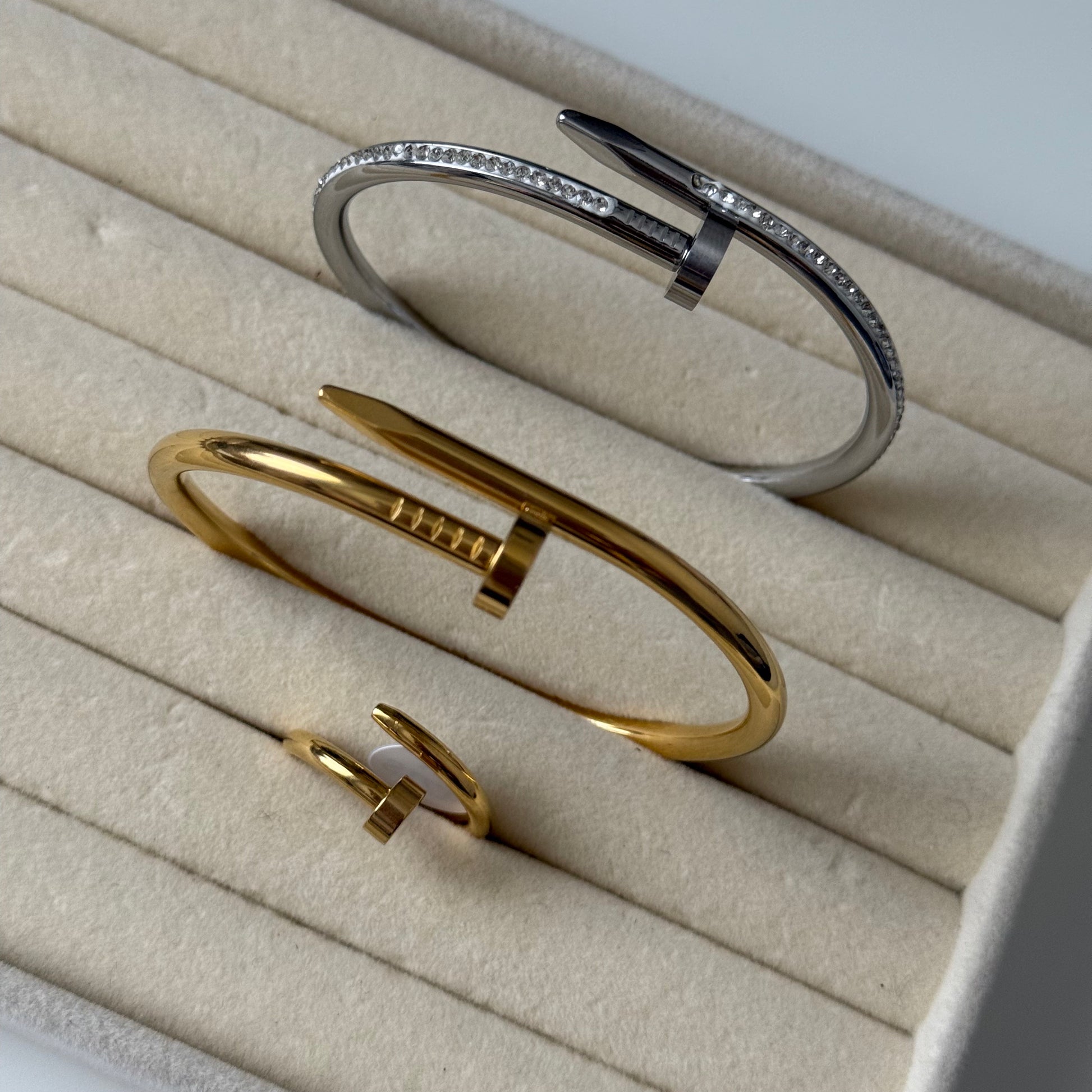 Nagel Armreif Edelstahl 18k vergoldet oder versilbert