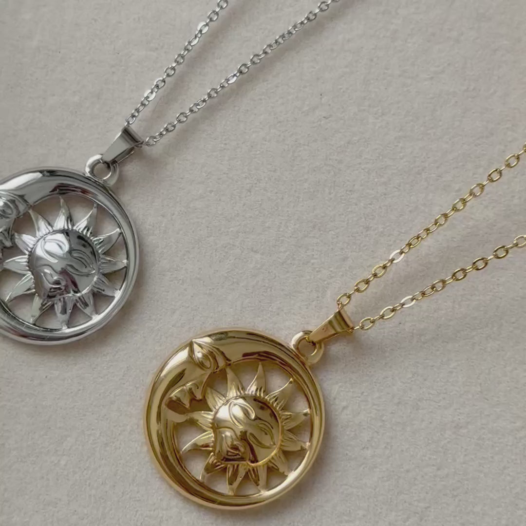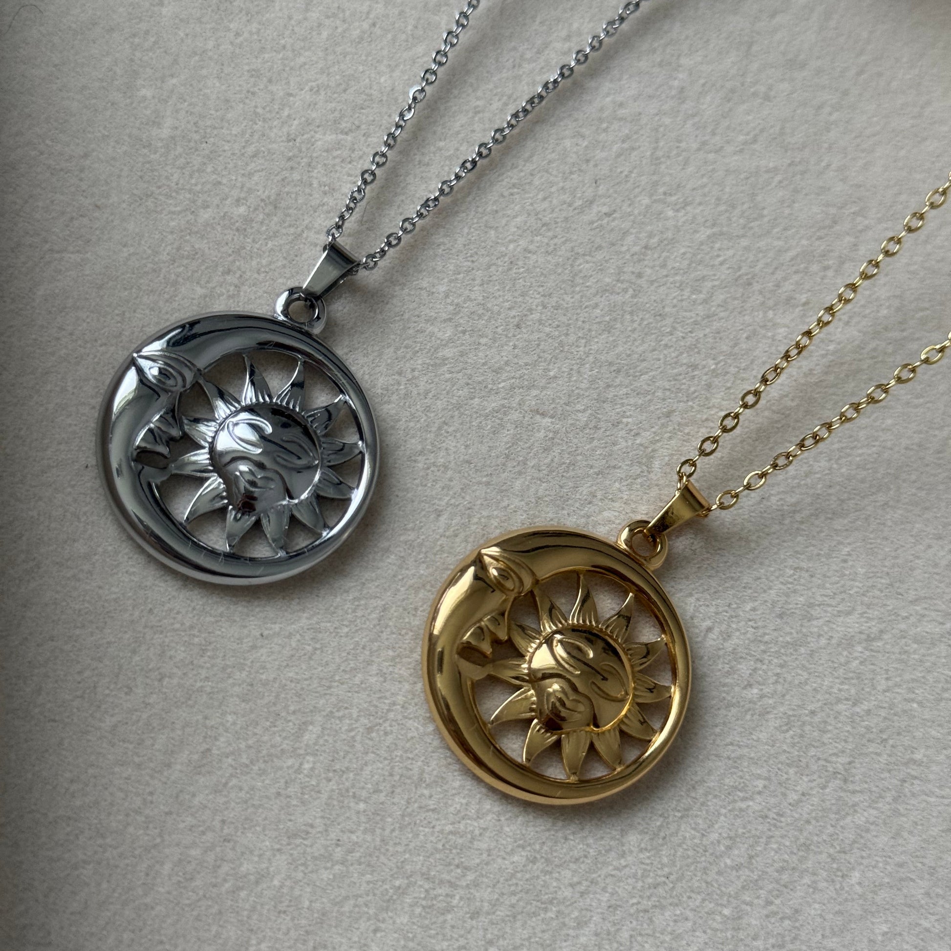 Schlichte Kette mit festem Anhänger, der einen Halbmond und einen Stern zeigt. Dieses himmlische Duo steht für Balance, Orientierung und innere Ruhe.